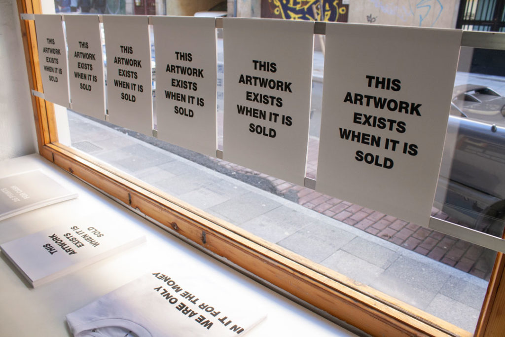 Y es que la obra de Luis San Sebastián se levanta sobre firmes referentes teóricos como Nicolas Bourriaud o Hal Foster, a la vez que bebe del trabajo de artistas conceptuales de distintas épocas. Dentro de We Are Only in It for the Money nos encontramos ante un arte metadiscursivo donde cada obra hace referencia a sí misma para hablar de su esencia como objeto artístico y su paradójica relación con el mercado del arte.