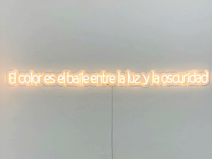 Es luz reúne la obra de cinco artistas cuyo trabajo transita ese universo habitado por haces luminosos, impulsos eléctricos e hipnóticos colores que busca trascender la percepción sensorial del espectador mediante su interacción con él. La muestra propone un recorrido a través de una serie de piezas que invitan a la introspección, al tiempo que invocan las cualidades subjetivas del color. Así, podremos entablar conversación con los experimentos lumínicos de Lidia Benavides (Madrid, 1971), los envolventes paisajes de Carmen Laffón (Sevilla, 1934), la oda al azul de Ángeles San José (Madrid, 1961), la escultura interactiva de Anaisa Franco (Brasil, 1981), y las visiones cromáticas de Virginia Rivas (Madrid,1981). De este modo, distintas aproximaciones a los efectos de la luz y su relación con el entorno se funden en esta muestra colectiva para hacer viajar al espectador a otros mundos bañados por luces de neón, destellos y color.